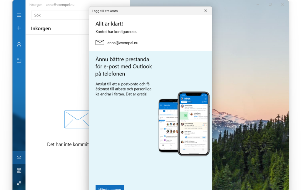 5. Klart. Stäng rutan. För att konfigurera en telefon, se följande guider för Iphone och Android.